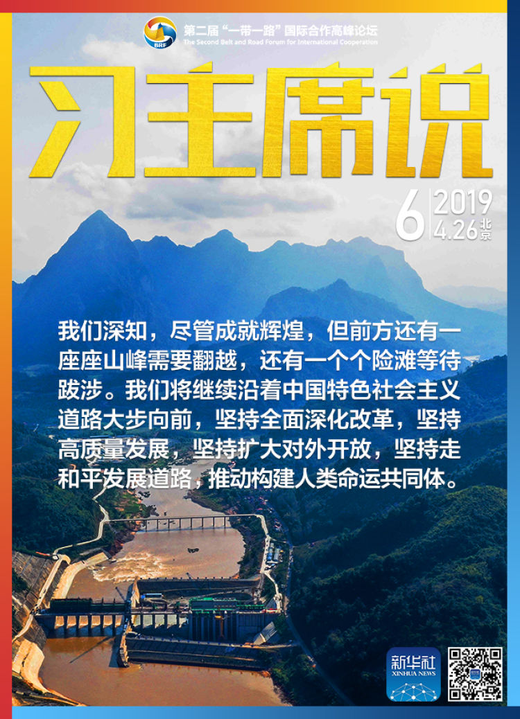 6. 我們深知,盡管成就輝煌,但前方還有一座座山峰需要翻越,還有一個個險灘等待跋涉。我們將繼續沿著中國特色社會主義道路大步向前,堅持全面深化改革,堅持高質量發展,堅持擴大對外開放,堅持走和平發展道路,推動構建人類命運共同體。