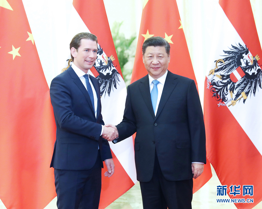 4月29日,國(guó)家主席習(xí)近平在北京人民大會(huì)堂會(huì)見奧地利總理庫(kù)爾茨。 新華社記者 劉衛(wèi)兵 攝