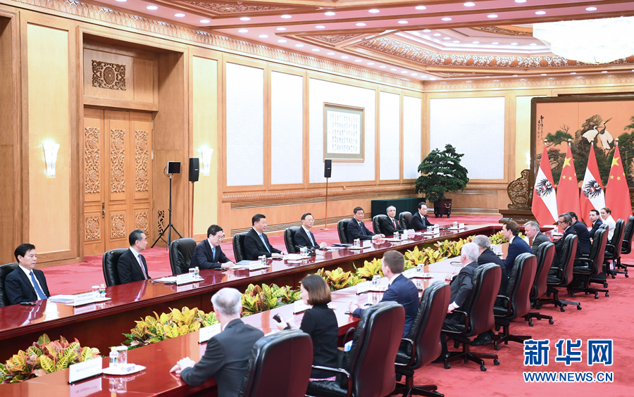 習(xí)近平指出,中方高度重視發(fā)展中奧關(guān)系。兩國(guó)友好戰(zhàn)略伙伴關(guān)系不斷得到充實(shí)。中奧合作潛力巨大,前景廣闊。雙方要堅(jiān)持平等相待、相互尊重,不斷將雙邊關(guān)系推向新高度。要為加強(qiáng)兩國(guó)人文交流搭建更多平臺(tái),促進(jìn)兩國(guó)民心相通。中方歡迎奧方積極參與共建“一帶一路”和“16+1合作”,贊賞奧方對(duì)中國(guó)投資展現(xiàn)的開放姿態(tài),歡迎奧地利企業(yè)抓住中國(guó)新一輪擴(kuò)大開放帶來(lái)的機(jī)遇。