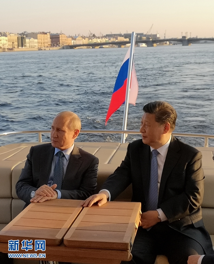 6月6日,國(guó)家主席習(xí)近平在圣彼得堡同俄羅斯總統(tǒng)普京再次舉行會(huì)晤。普京邀請(qǐng)習(xí)近平共同乘船游覽涅瓦河。新華社記者 李學(xué)仁 攝
