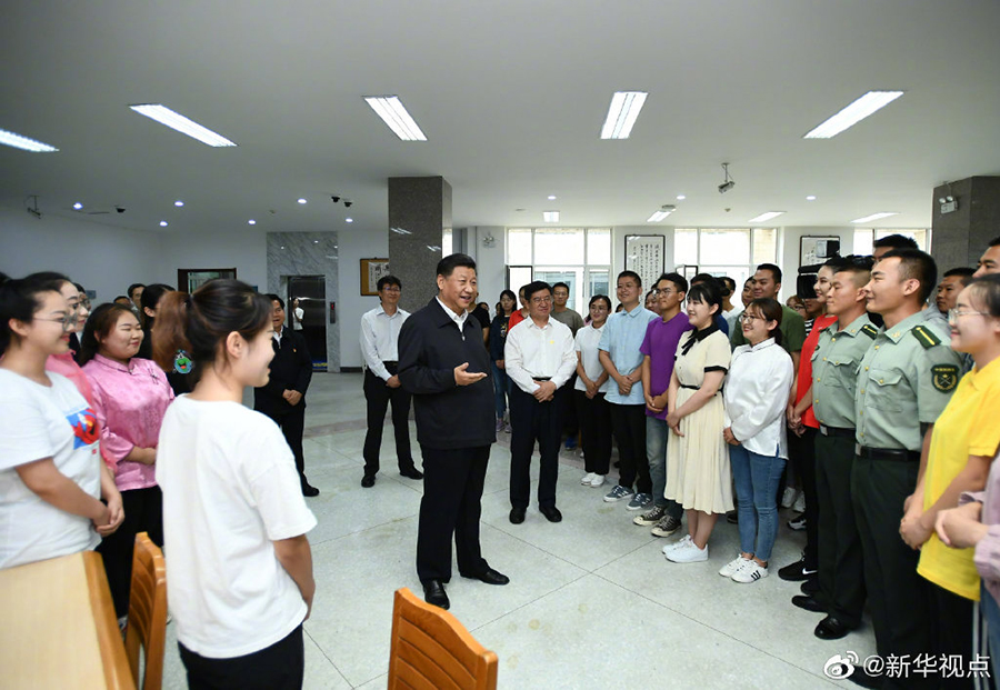 16日上午,正在內蒙古考察調研的習近平總書記來到內蒙古大學,走進圖書館同學生們親切交談。習近平指出,少年強則中國強??吹侥昵嗳私】德斆鳌^發向上,充滿正能量,心里十分高興。長江后浪推前浪,青出于藍而勝于藍,未來是屬于年青人的。在中華民族偉大復興的進程中,你們生逢其時,何其幸也。再過30年,到本世紀中葉實現第二個百年奮斗目標的時候,你們正好是國家的骨干和棟梁。大家要志存高遠、腳踏實地,學好知識,打好基礎,增長才干,將來為中華民族偉大復興貢獻自己的智慧和力量。 (文字:張曉松、朱基釵 攝影:謝環馳、李學仁)