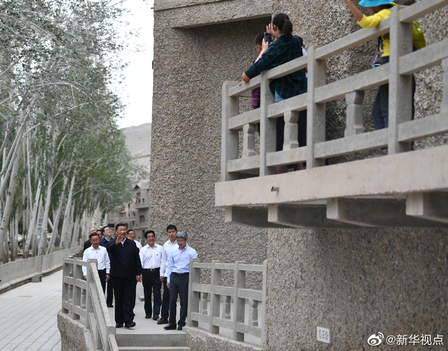 習近平總書記19日在甘肅省考察調研。當天下午,他來到全國重點文物保護單位敦煌莫高窟,實地考察文物保護和研究、弘揚優秀歷史文化等情況。(文字:張曉松、朱基釵 攝影:鞠鵬、謝環馳)