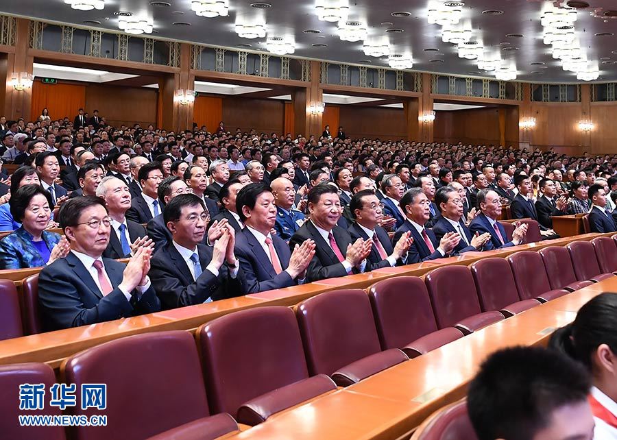 9月29日,慶祝中華人民共和國成立70周年大型文藝晚會《奮斗吧 中華兒女》在北京人民大會堂舉行。習近平、李克強、栗戰書、汪洋、王滬寧、趙樂際、韓正、王岐山等黨和國家領導人同4000多名觀眾一起觀看演出。 新華社記者 謝環馳 攝
