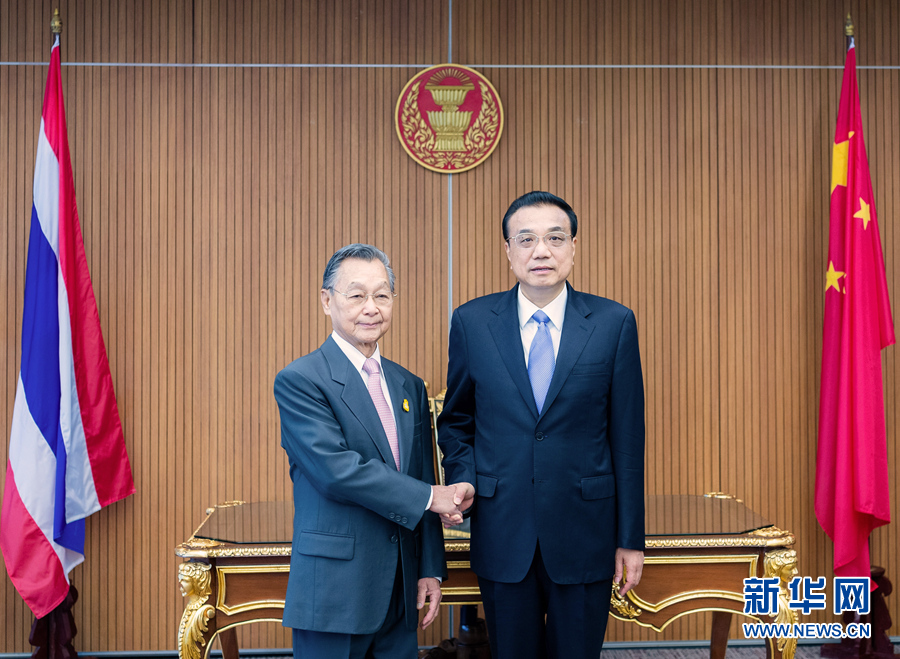 李克強(qiáng)高度評價(jià)當(dāng)前中泰關(guān)系發(fā)展,贊賞泰國國會長期以來為促進(jìn)兩國友好所作努力,表示中方愿同泰方繼續(xù)深化包括立法機(jī)構(gòu)在內(nèi)的各領(lǐng)域交流與合作,持續(xù)鞏固兩國關(guān)系的民意基礎(chǔ),讓“中泰一家親”親上加親。我們愿同泰方加強(qiáng)在地區(qū)和國際事務(wù)中的溝通與協(xié)調(diào),推動中國-東盟關(guān)系和區(qū)域一體化不斷向前發(fā)展。