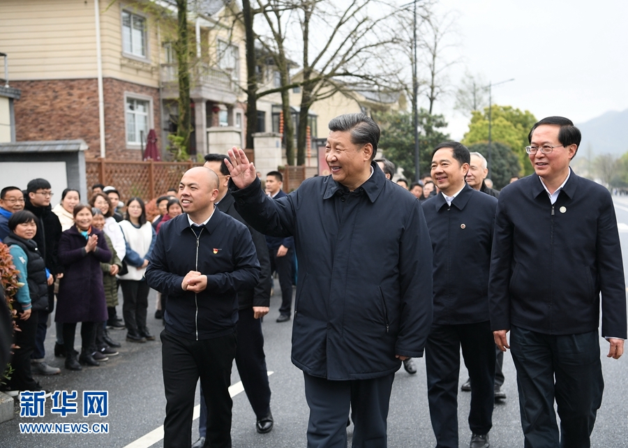 3月30日,中共中央總書記、國家主席、中央軍委主席習近平在浙江省安吉縣天荒坪鎮余村考察,了解該村多年來踐行“綠水青山就是金山銀山”理念、推動綠色發展發生的巨大變化。 新華社記者 燕雁 攝