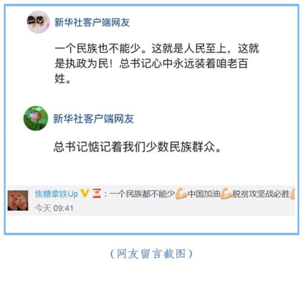 總書記還說:“各民族團(tuán)結(jié)攜手,共同邁進(jìn)全面小康,體現(xiàn)了中華民族優(yōu)良傳統(tǒng),體現(xiàn)了中國特色社會主義制度的顯著優(yōu)勢。”對此,網(wǎng)民認(rèn)為既貼心又有分量。