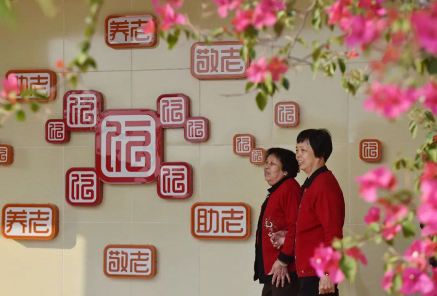 老人們在福建省晉江市磁灶鎮大埔村敬老院散步(新華社記者宋為偉 攝)