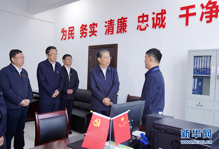 這是9月14日,趙樂際在貴州省畢節市威寧縣二塘鎮機關,詳細了解巡視巡察工作情況。 新華社記者 張領 攝