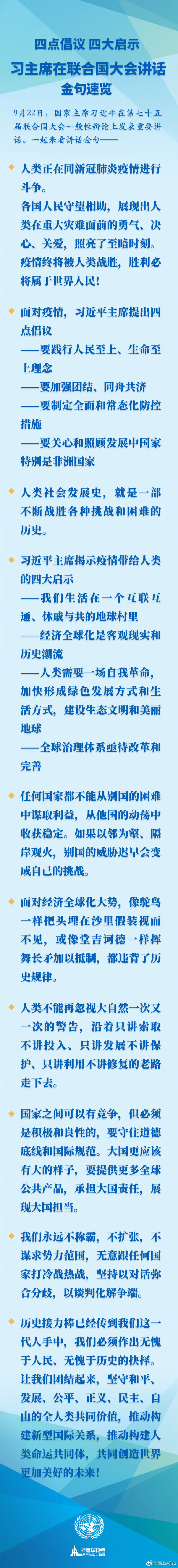 9月22日,國家主席習近平在第七十五屆聯合國大會一般性辯論上發表重要講話。一起來看講話金句??