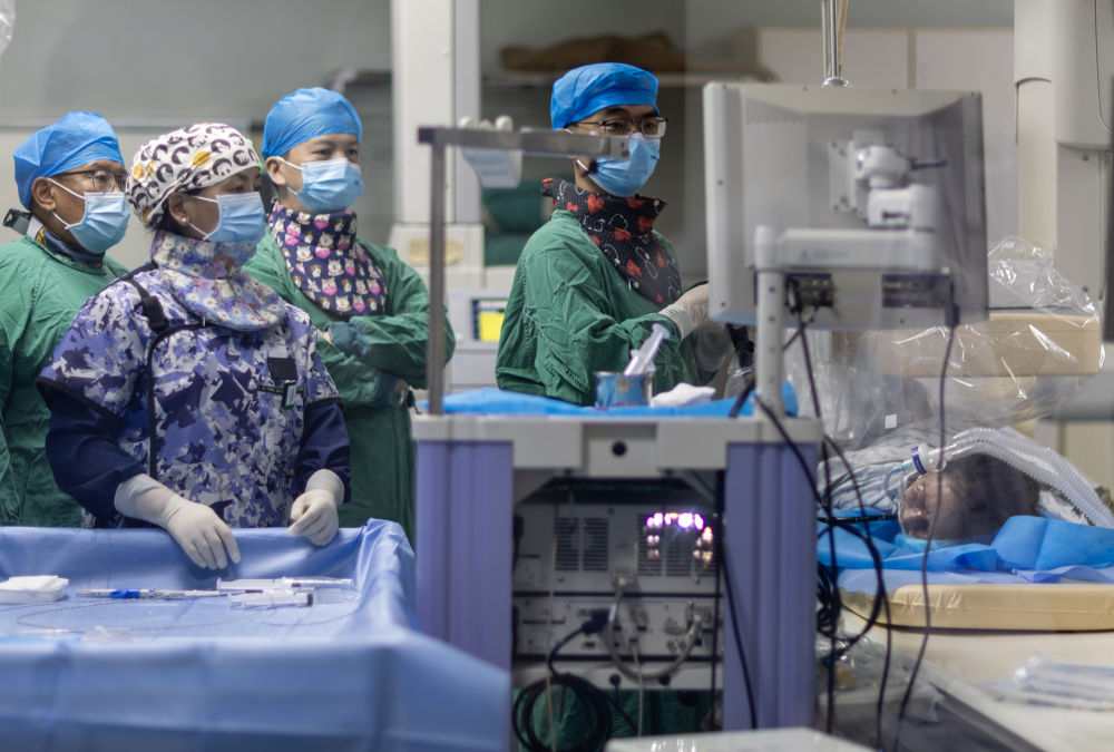 2025年8月5日,协和医院第十批援藏医生王强(右二)、第十一批援藏医生蒋青伟(左三)和西藏自治区人民医院医生扎西(左一)在拉萨为患者施行内镜逆行胰胆管造影术。2025年8月,西藏自治区人民医院启动第十批和第十一批“组团式”援藏医疗人才交接工作。从2015年起,全国17个对口支援省市203家医院选派2000余名专家组团式帮扶西藏各级医疗机构,为西藏培养本地医务人员5536名。得益于医疗人才“组团式”援藏政策,西藏卫生健康服务网络更加完善,服务可及性、便利性不断提高。10年来,一批又一批来自全国各地医疗机构的专业医疗人才来到西藏,通过“以院包科”“团队带团队”“专家带骨干”“师傅带徒弟”等工作机制,为雪域高原培养出一支带不走的“健康卫队”。