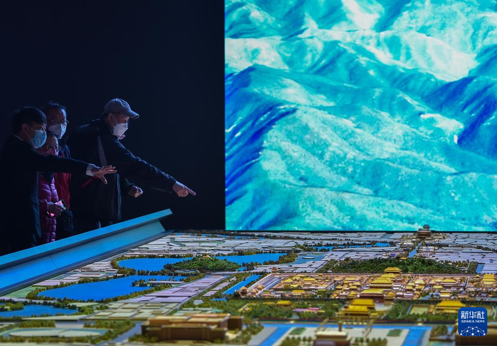 3月28日,观众在观看北京中轴线沙盘。