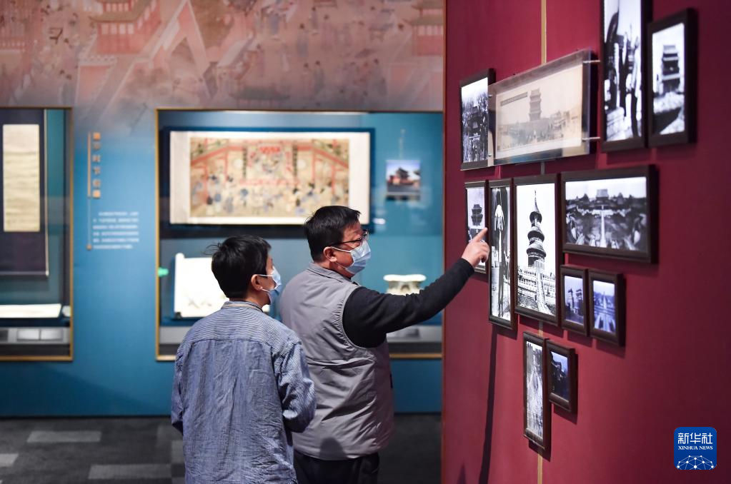 3月28日,观众在观看北京中轴线老照片。