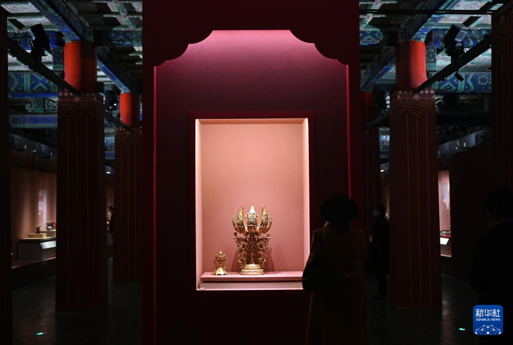 这是4月28日在北京故宫博物院拍摄的“祥开万象——故宫与西藏文物联展”展览现场。