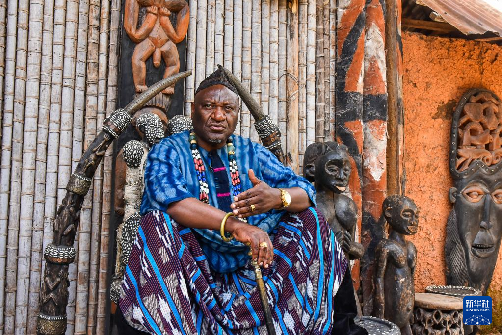 4月13日,在喀麦隆西部大区,巴图方酋邦酋长伊诺桑·纳扬·图康坐在宫殿内。