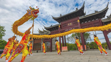 5月9日,东林镇第二小学的学生向柳编艺人学习柳编技艺。