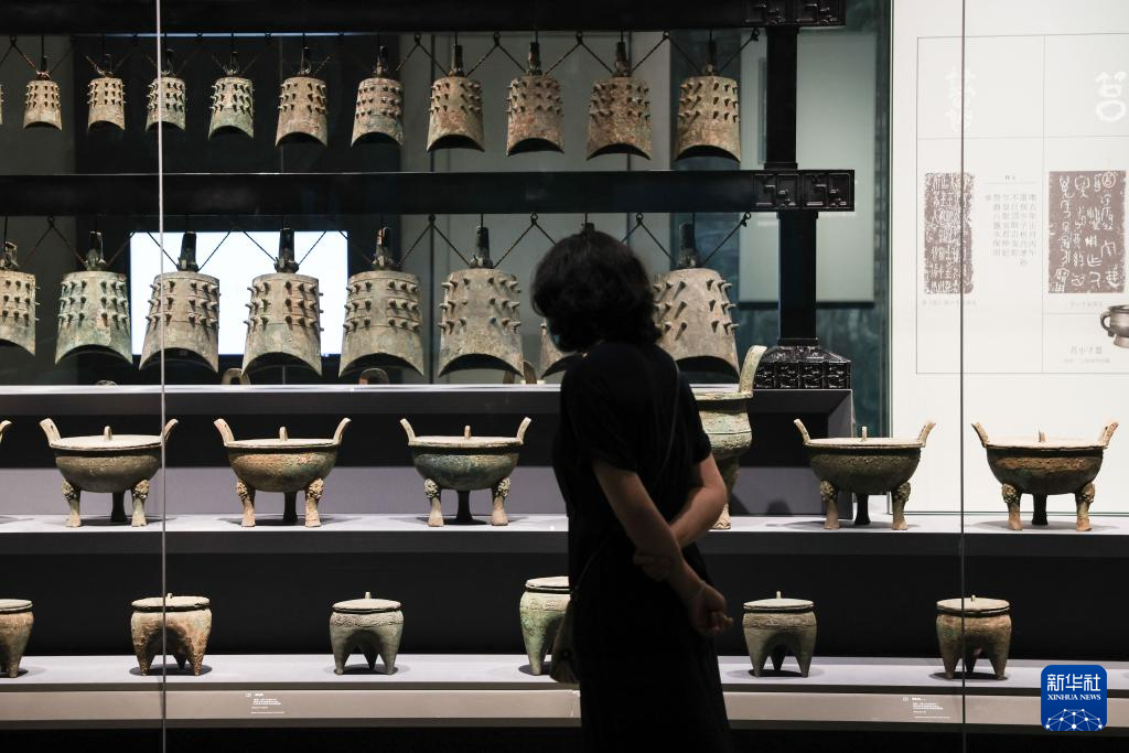 5月16日,观众在参观展出的商周时期青铜器。