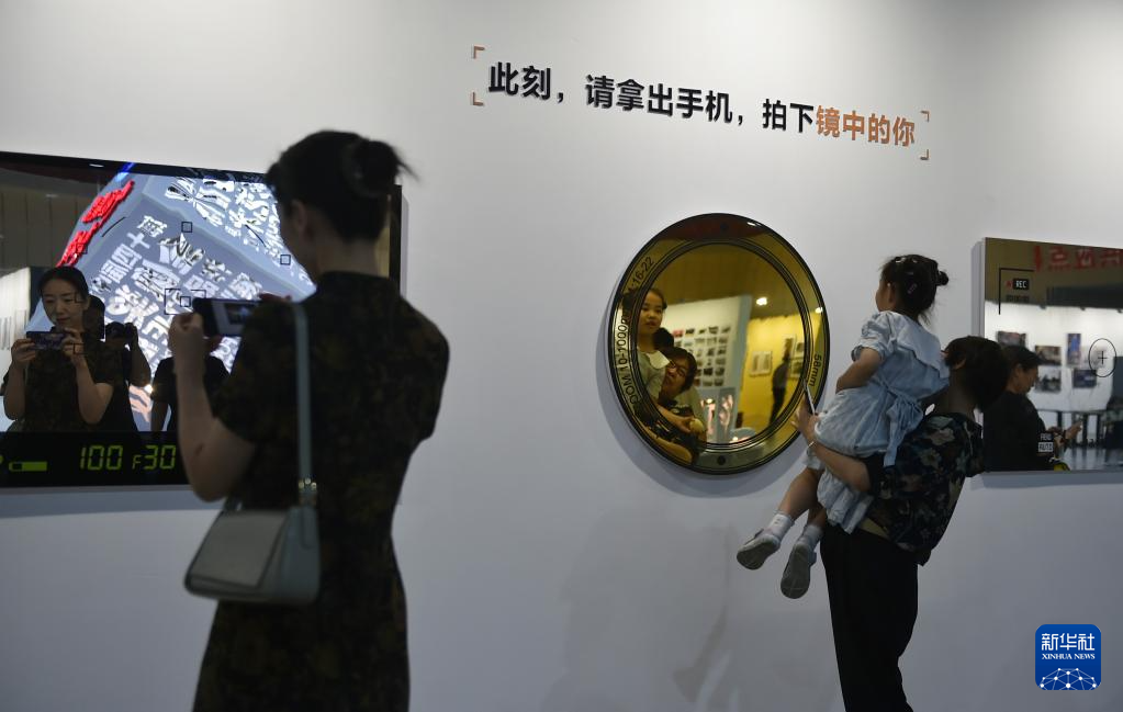 6月22日,参观者在三门峡国际文博城内的展览现场体验互动项目。