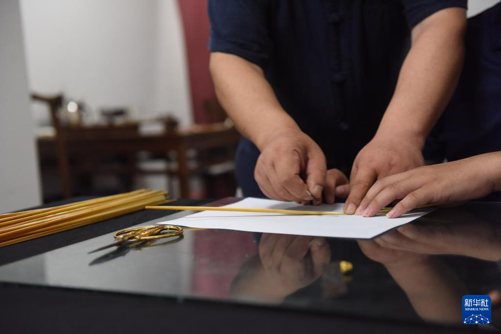 7月12日,吴永龙将细小的“零件”从麦秆做成的条片上剪下。