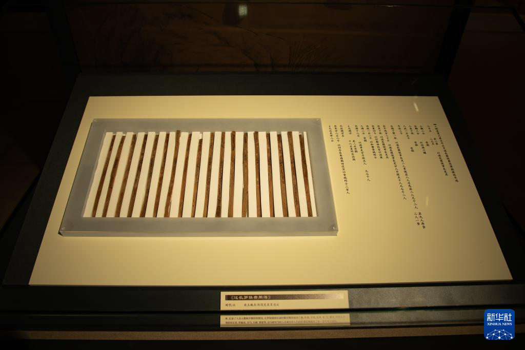 这是9月7日拍摄的甘肃简牍博物馆展出的由18枚简牍组成的“过长罗侯费用薄”。