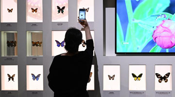 11月26日,参观者在展览现场拍摄展出的福字。