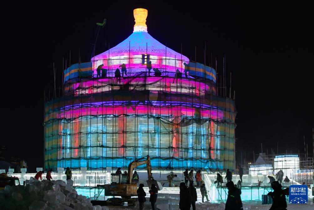 以“龙腾冰雪 逐梦亚冬”为主题的第二十五届哈尔滨冰雪大世界将于12月18日开园迎客。目前在园区内,林立的塔吊、穿梭的机械交织成一首忙碌的建设“交响曲”。本届哈尔滨冰雪大世界将使用25万立方米的冰和雪,倾力打造一个梦幻精彩的冰雪童话世界。