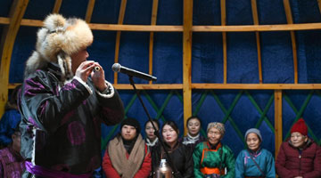 12月23日,家长和孩子在上海博物馆“社会美育大课堂”羊毛毡手工工作坊学习制作缂丝《莲塘乳鸭图》。