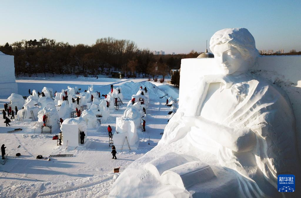 多国雪雕艺术家冰城秀技-新华网