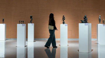 2月26日,参观者在河南安阳殷墟博物馆新馆内观看展品“亚长”牛尊。
