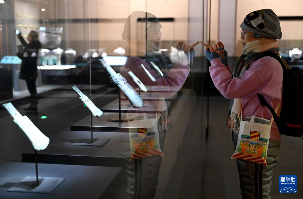 2月26日,参观者在河南安阳殷墟博物馆新馆内拍摄展品。
