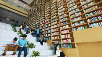 吉林大学图书馆古籍部主任王丽华在线装书库内查看古籍的保存状况(4月19日摄)。