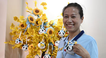 5月10日,法国漆艺家文森·漆(中)指导重庆市城口县职业教育中心学生打磨漆面。