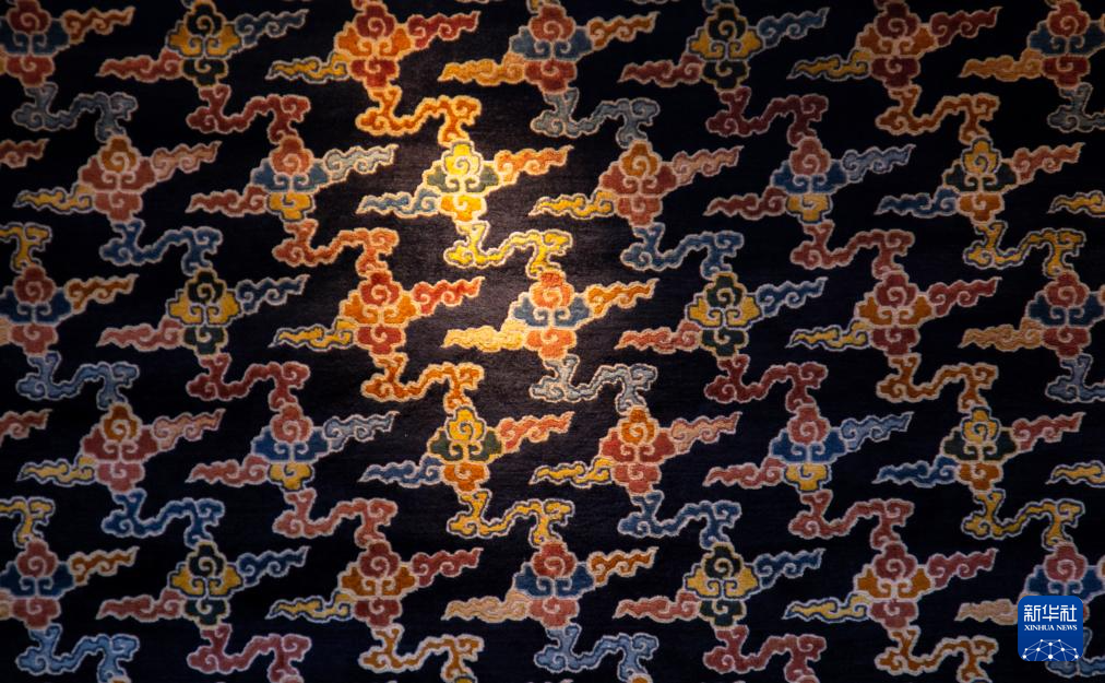 这是在位于北京十里河的工作室内展示的冀豫团队的宫毯作品(6月27日摄)。