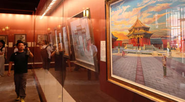 7月6日,在新疆克州阿图什市松他克镇阿孜汗村,村民在欣赏作品。