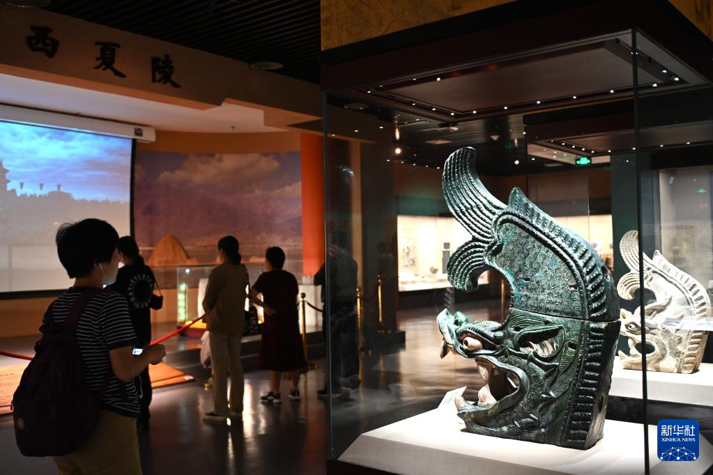 9月1日,游客在宁夏博物馆观赏西夏文物。