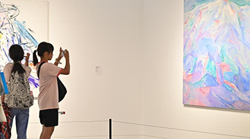 8月31日,参观者在中国美术馆参观拍摄展出作品。