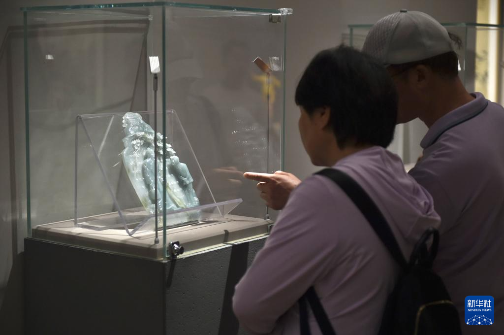 8月31日,观众在中国美术馆参观展出玉雕作品“京味”。