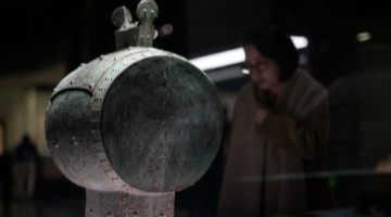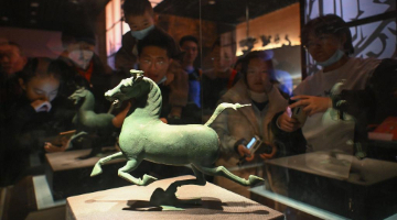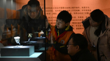1月9日,参观者走在“灵蛇·生生不已”蛇年特展现场。