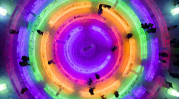 1月9日,参观者在展览上体验名为《情绪几何5.0》的互动装置艺术品。