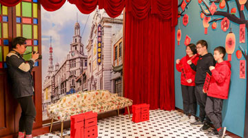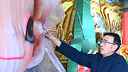 观众在上海博物馆蛇年迎春展拍摄展品陕西皮影“青蛇架”(1月14日摄)。