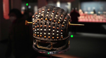 观众在上海博物馆蛇年迎春展拍摄展品蛇纲网状铜器(1月14日摄)。