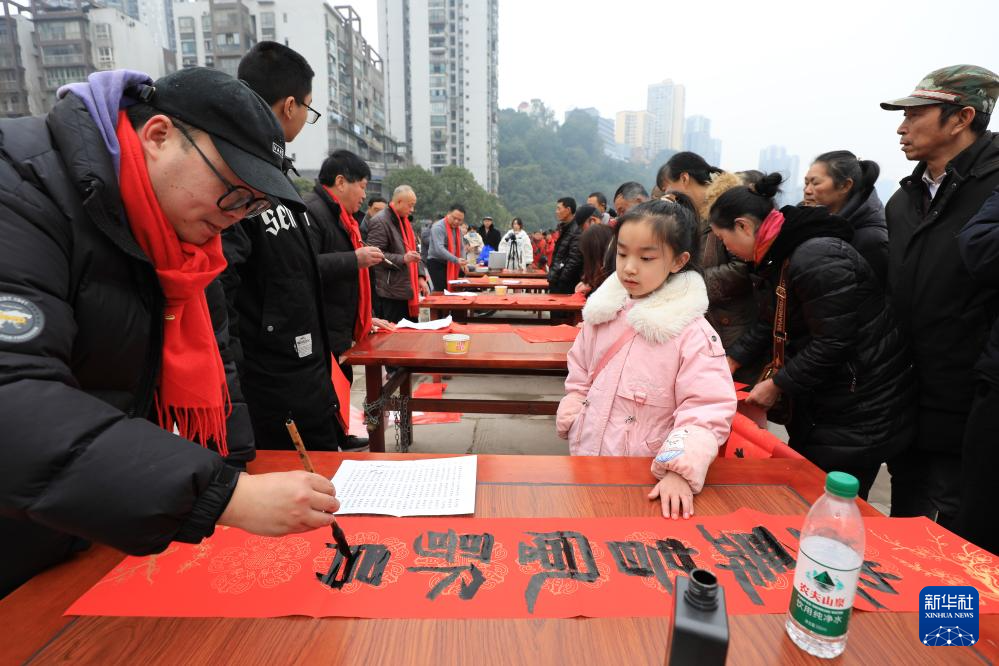 新春临近,各地举行写春联、写福字活动,书法爱好者挥毫泼墨为广大市民送去祝福。