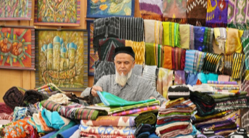 3月18日,观众在株洲博物馆观看展出的染织服饰作品。