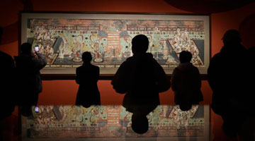 3月18日,观众在株洲博物馆参观“炎土圣风:楚汉观照——中国传统服饰文化研究与艺术创作展”。