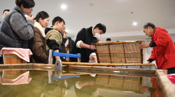 3月29日,观众在参观“如是莫高”敦煌艺术大展中展出的莫高窟第45窟的复刻版本。