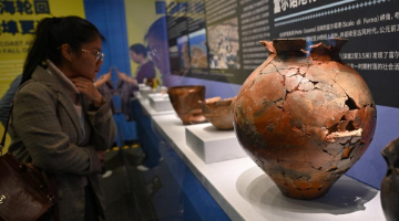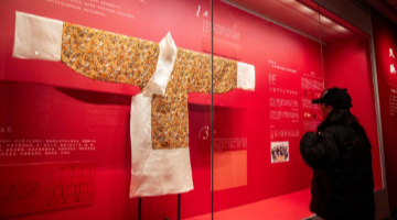 3月29日,观众在参观“如是莫高”敦煌艺术大展中展出的复制的敦煌出土的经卷等文物。