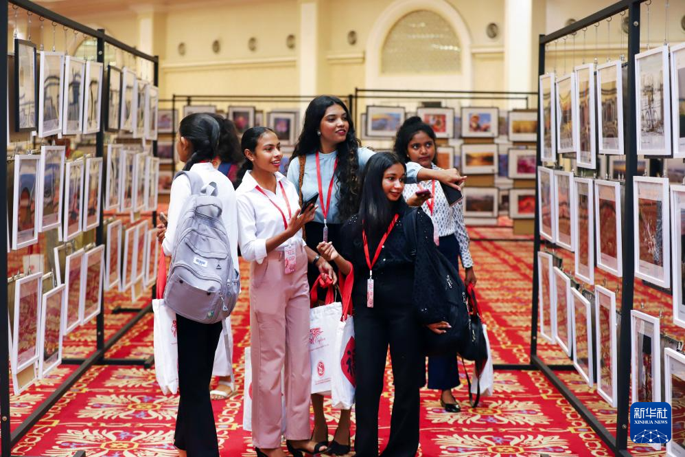 6月6日,在斯里兰卡科伦坡,参观者在总理府欣赏2025斯里兰卡-中国文化摄影展。