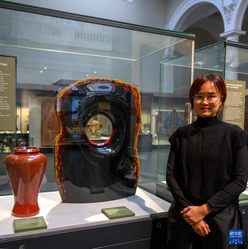 10月27日,在英国伦敦维多利亚与阿尔伯特博物馆(V&A),李晓欣参加《多维:中国当代工作室工艺》展览媒体预展。新华社发(雷伊·唐摄)