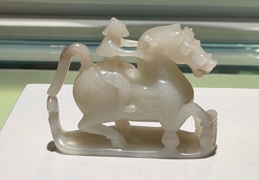 西汉时期的圆雕白玉仙人奔马。新华社记者 孙丽萍 摄