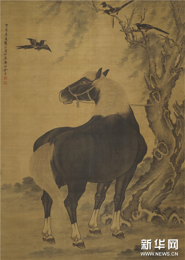 此次展出的古代作品中,元代《饲马图》,线条挺劲,马体健硕,笔墨高古,意境悠远。作者虽不可考,但此画堪称精品。清代《骏马图》出自画马名家俞大年之手,他曾被誉为得曹霸、韩幹心传,笔下之马,形神皆妙。清末名家任伯年以写意手法画马,开创水墨马之先河。以人物画见长的钱慧安,极少画马,此次展出的《春风得意马蹄疾》,线条遒劲流畅,造型精准生动,雅俗共赏。