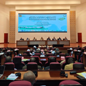 这是12月14日在毛里塔尼亚首都努瓦克肖特拍摄的第四届塔克拉玛干沙漠国际论坛开幕式现场。新华社发(中国科学院新疆生态与地理研究所供图)